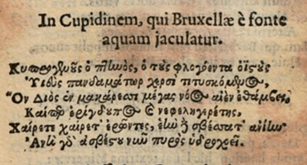 Een bezoek aan Brussel ergens rond 1615 moet Heinsius ook hebben geïnspireerd tot een Grieks gedicht (naast een langer Latijns stuk): dat gekke plassende mannetje moest hij kost wat kost vereeuwigen! En dat deed hij als volgt: