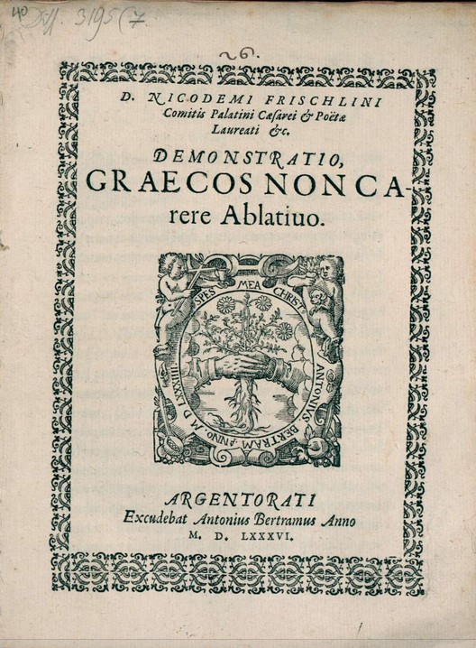 In the new "Ad fontes" feature of Adendros, I want to offer English translations of short source texts or text excerpts from the history of (Greek) language studies which struck me as particularly interesting, enlightening, or enticing. Today: part one of a grammar dispute between Philipp Nicodemus Frischlin and Martin Crusius, two sixteenth-century humanists who …
